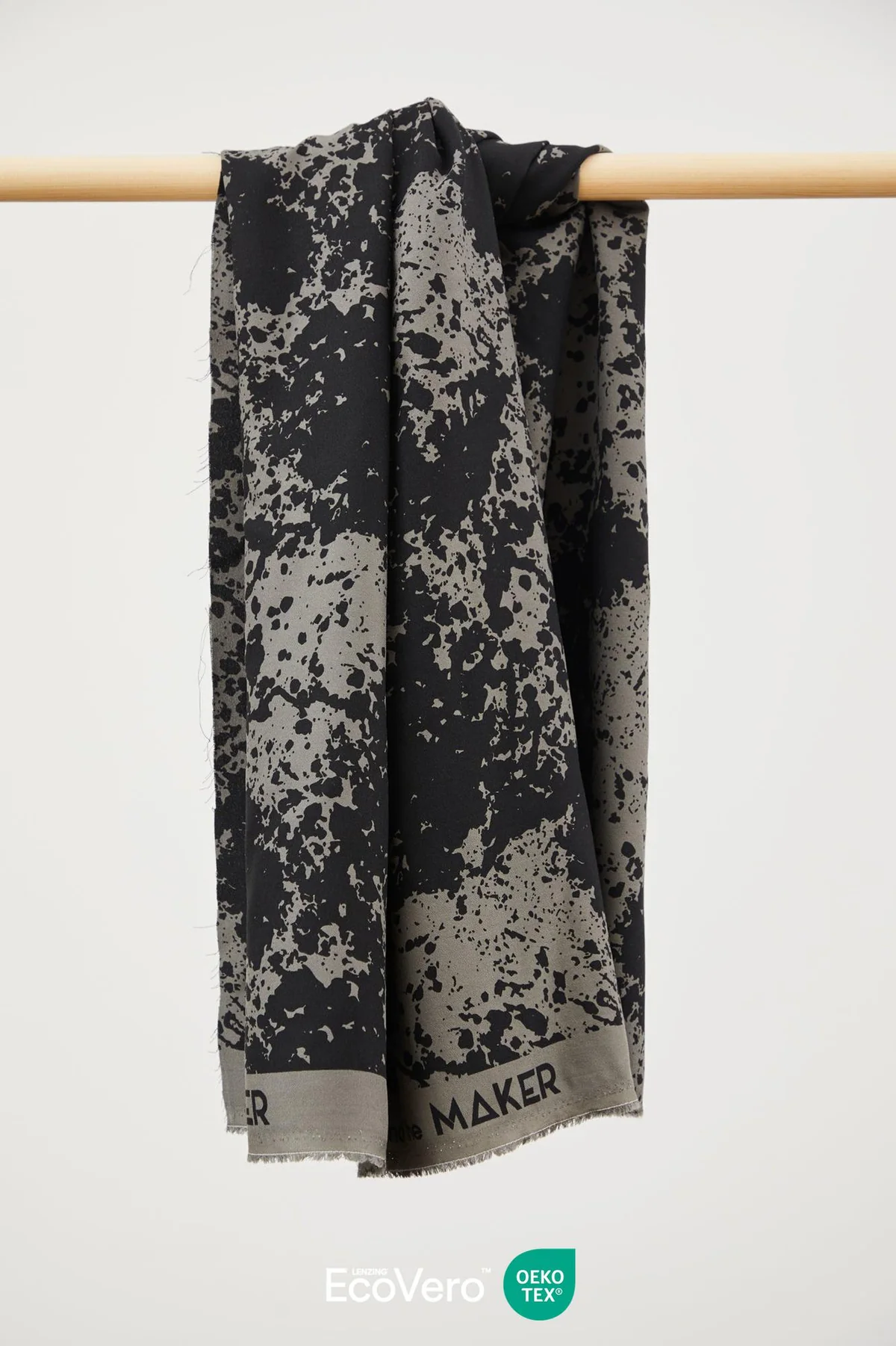 Crêpe de Viscose fond gris à motif abstrait noir