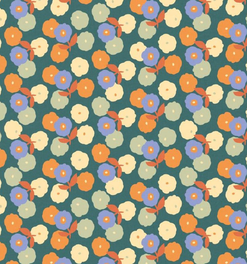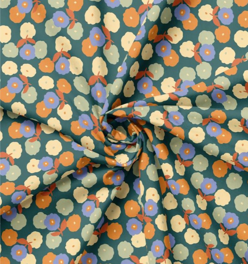 Popeline verte à fleurs vintage
