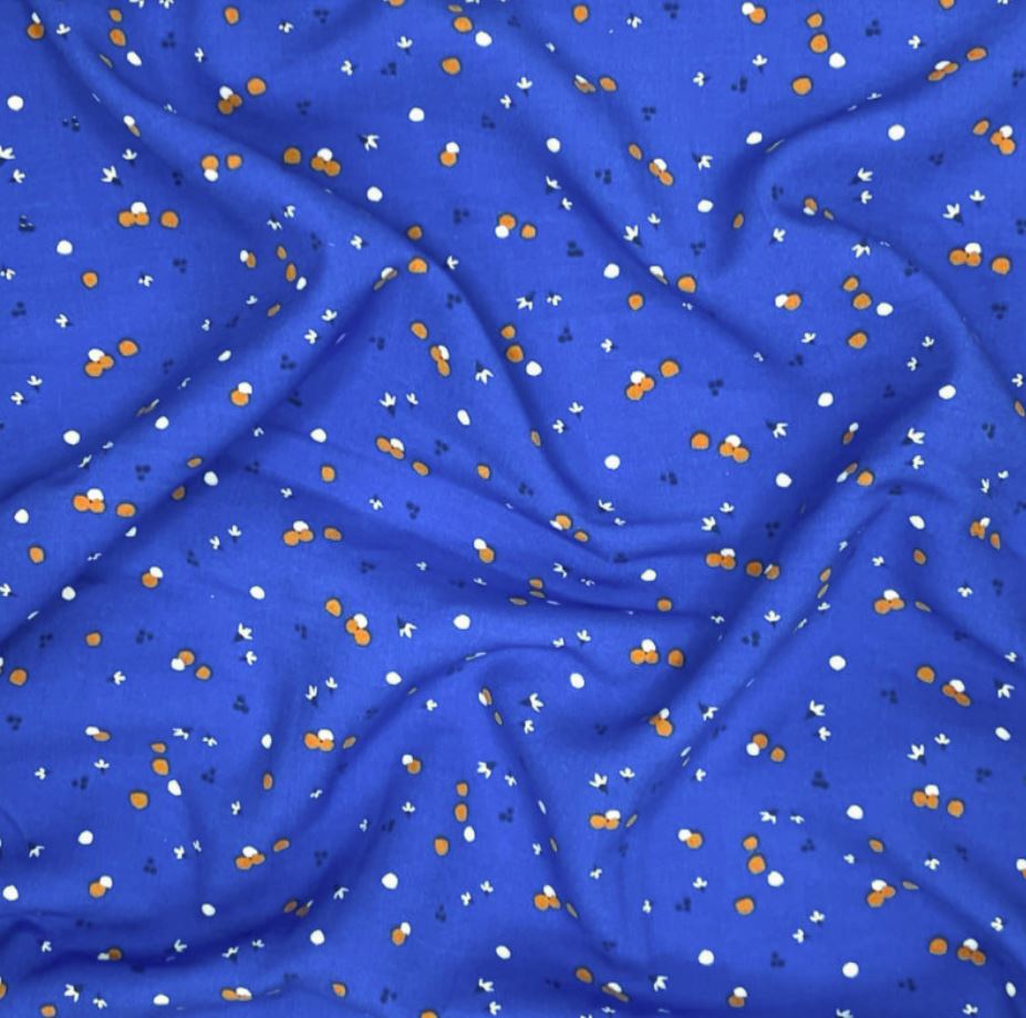 Viscose bleue avec des pois jaunes et blancs