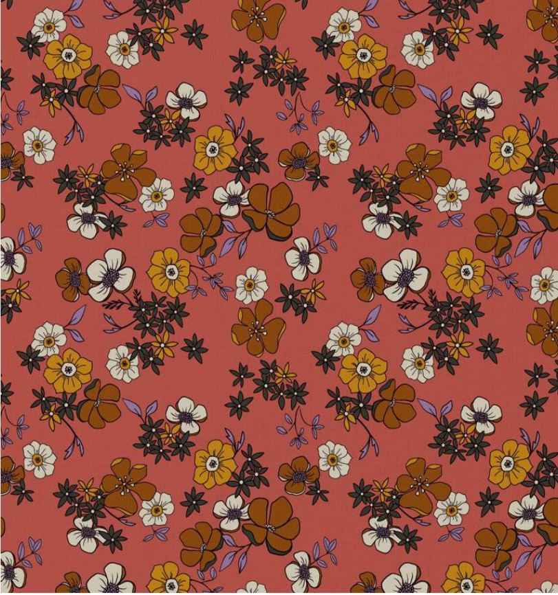 Viscose rose des bois à fleurs retro